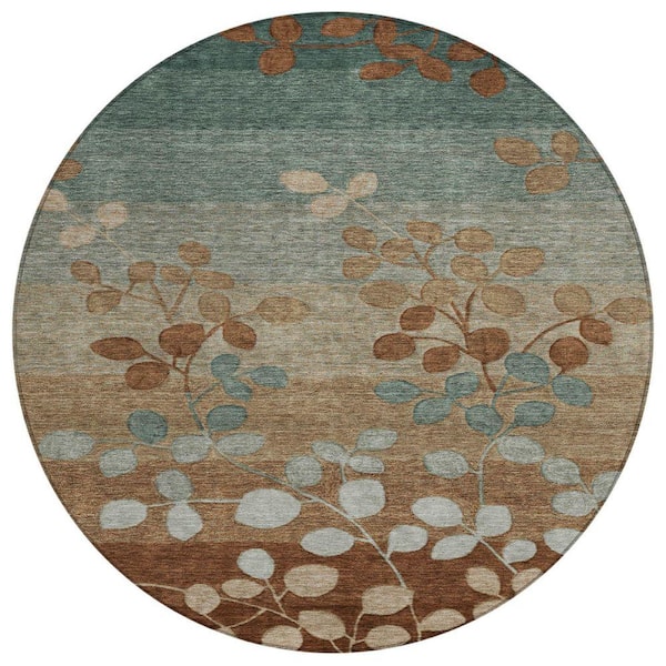 Chantille Machine Washable Indoor/Outdoor Abstract ACN1900 Mocha 8 ft. x 8 ft. Round Rug