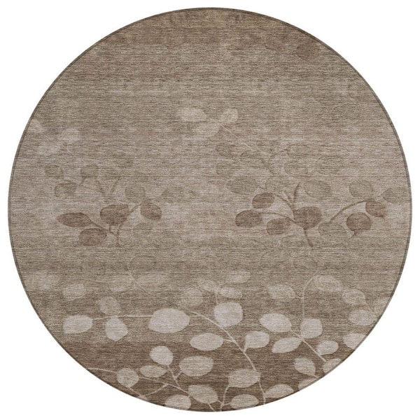 Chantille Machine Washable Indoor/Outdoor Abstract ACN1900 Taupe 8 ft. x 8 ft. Round Rug