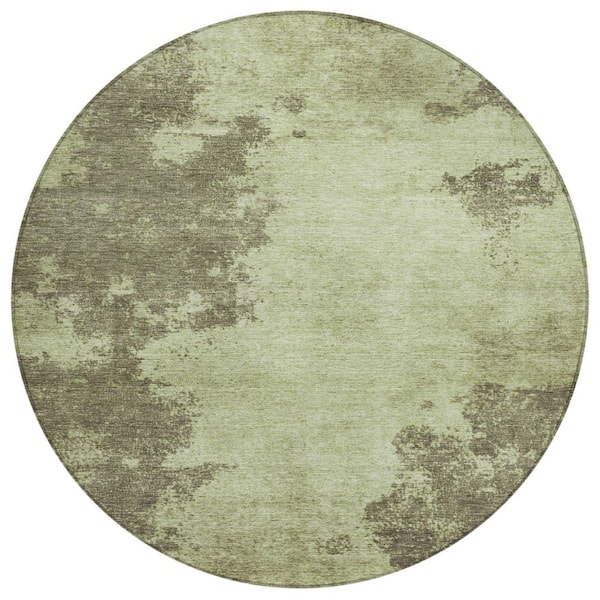 Chantille Machine Washable Indoor/Outdoor Abstract ACN1902 Olive 8 ft. x 8 ft. Round Rug