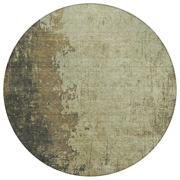 Chantille Machine Washable Indoor/Outdoor Abstract ACN1904 Olive 8 ft. x 8 ft. Round Rug