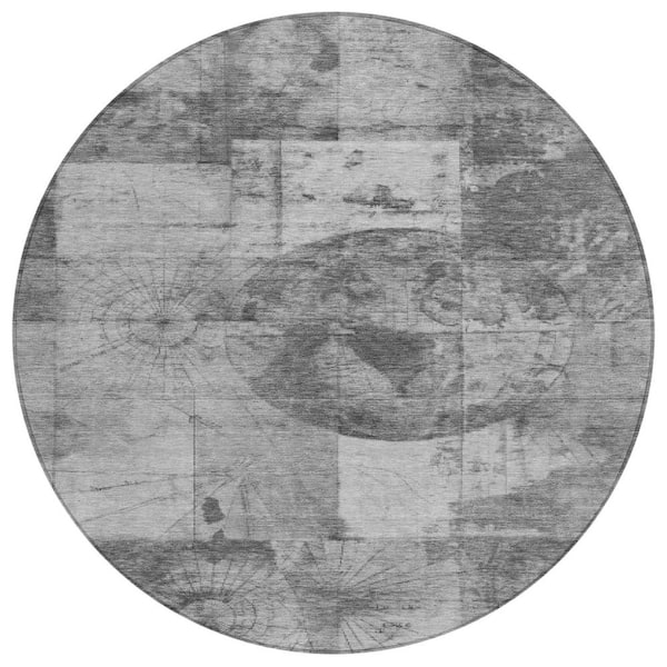 Chantille Machine Washable Indoor/Outdoor Abstract ACN1905 Gray 8 ft. x 8 ft. Round Rug