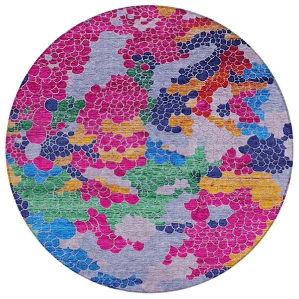 Chantille Machine Washable Indoor/Outdoor Abstract ACN1906 Blush 8 ft. x 8 ft. Round Rug