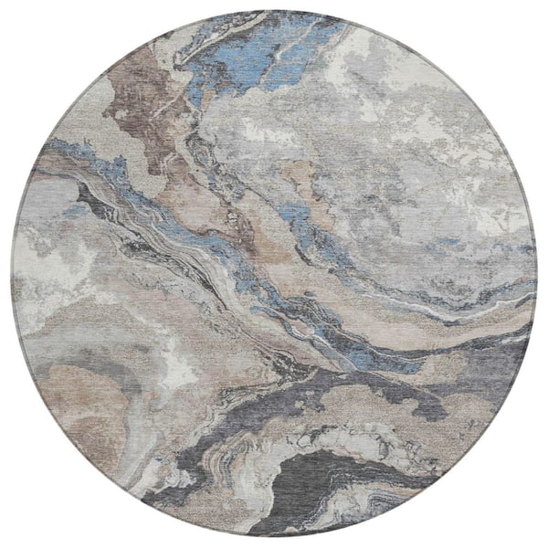 Chantille Machine Washable Indoor/Outdoor Abstract ACN1908 Taupe 8 ft. x 8 ft. Round Rug