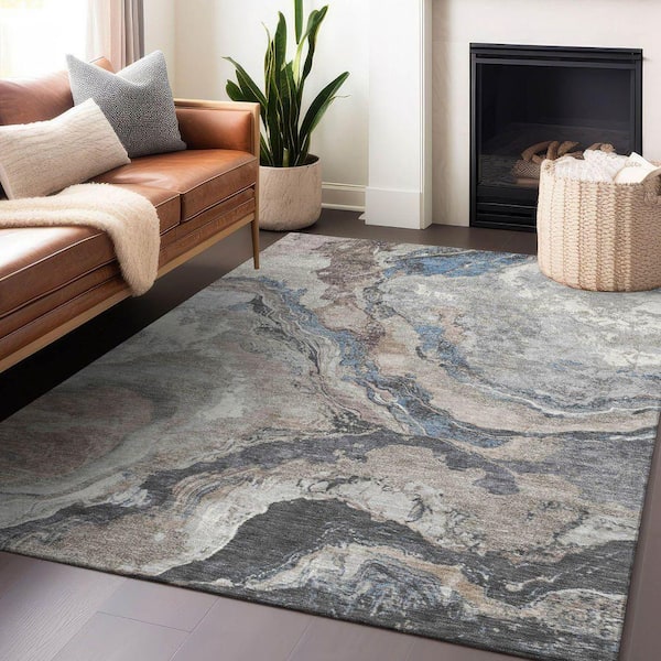 Chantille Machine Washable Indoor/Outdoor Abstract ACN1908 Taupe 9 ft. x 12 ft. Accent Rug