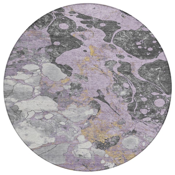Chantille Machine Washable Indoor/Outdoor Abstract ACN1909 Lavender 8 ft. x 8 ft. Round Rug