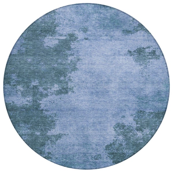 Chantille Machine Washable Indoor/Outdoor Abstract ACN1913 Denim 8 ft. x 8 ft. Round Rug