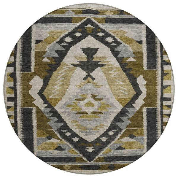 Chantille Machine Washable Indoor/Outdoor Abstract ACN1916 Chocolate 8 ft. x 8 ft. Round Rug
