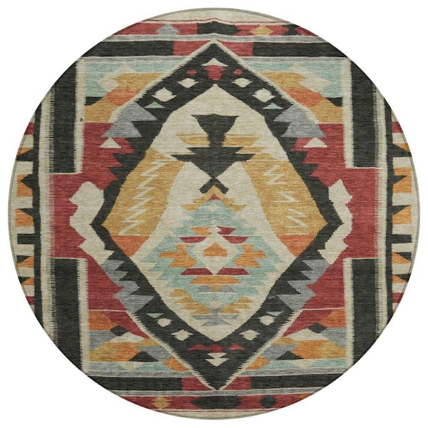 Chantille Machine Washable Indoor/Outdoor Abstract ACN1916 Red 8 ft. x 8 ft. Round Rug