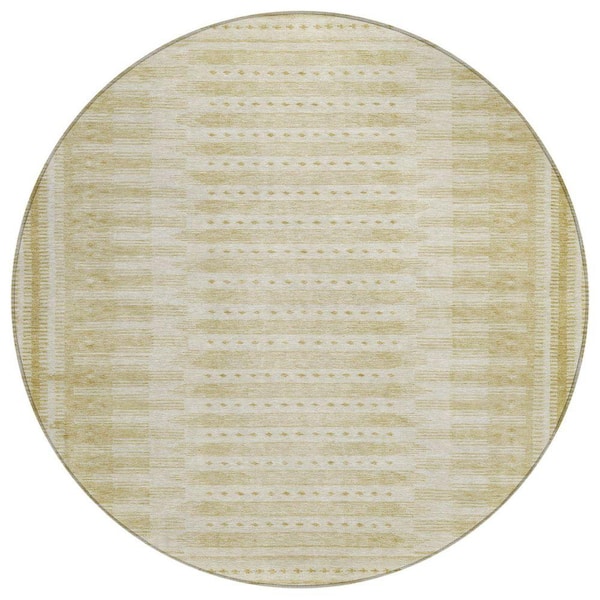 Chantille Machine Washable Indoor/Outdoor Abstract ACN1917 Gold 8 ft. x 8 ft. Round Rug