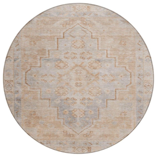Chantille Machine Washable Indoor/Outdoor Abstract ACN1918 Copper 8 ft. x 8 ft. Round Rug