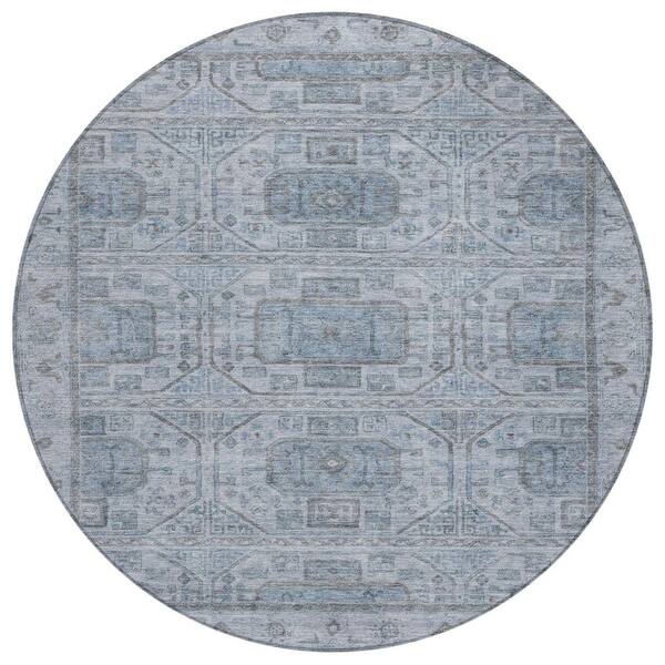 Chantille Machine Washable Indoor/Outdoor Abstract ACN1919 Blue 8 ft. x 8 ft. Round Rug