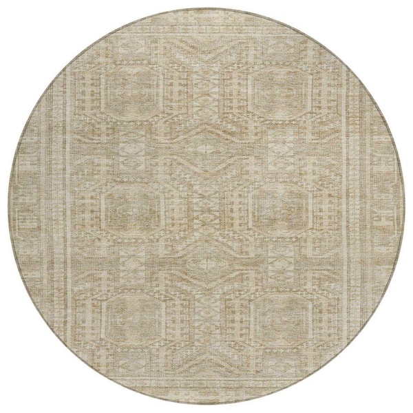 Chantille Machine Washable Indoor/Outdoor Abstract ACN1920 Beige 8 ft. x 8 ft. Round Rug