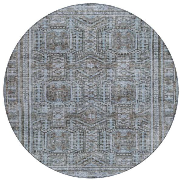 Chantille Machine Washable Indoor/Outdoor Abstract ACN1920 Chocolate 8 ft. x 8 ft. Round Rug