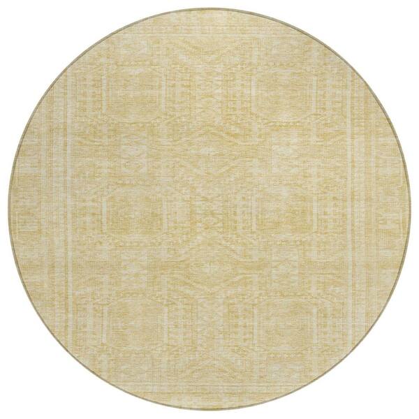 Chantille Machine Washable Indoor/Outdoor Abstract ACN1920 Wheat 8 ft. x 8 ft. Round Rug