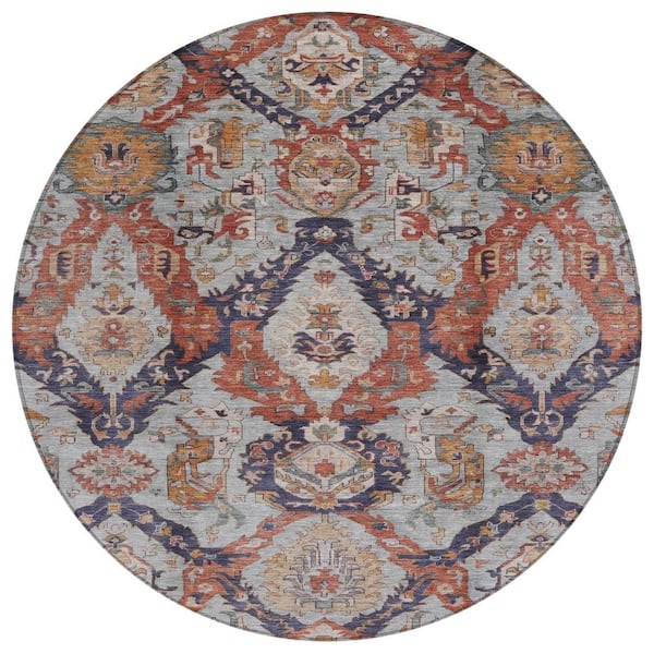 Chantille Machine Washable Indoor/Outdoor Abstract ACN1921 Blue 8 ft. x 8 ft. Round Rug