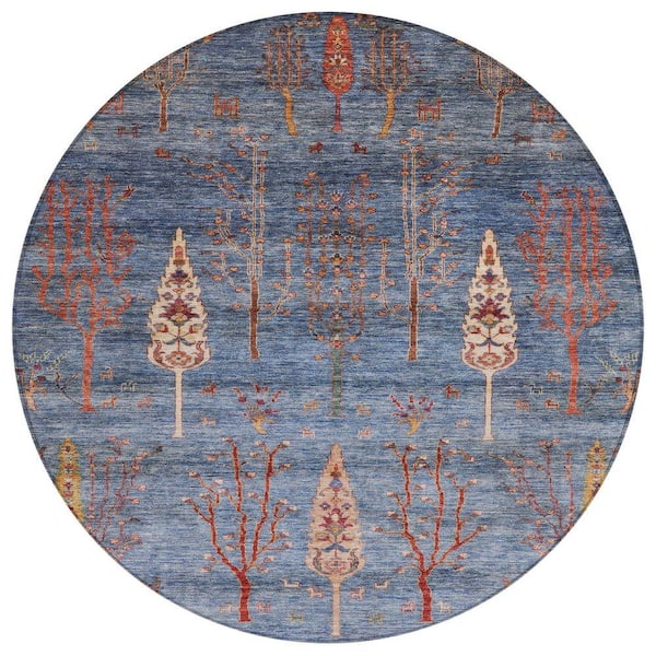 Chantille Machine Washable Indoor/Outdoor Abstract ACN1922 Blue 8 ft. x 8 ft. Round Rug