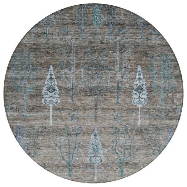 Chantille Machine Washable Indoor/Outdoor Abstract ACN1922 Brown 8 ft. x 8 ft. Round Rug