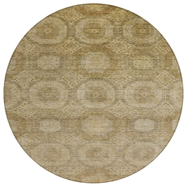 Chantille Machine Washable Indoor/Outdoor Abstract ACN1925 Brown 8 ft. x 8 ft. Round Rug