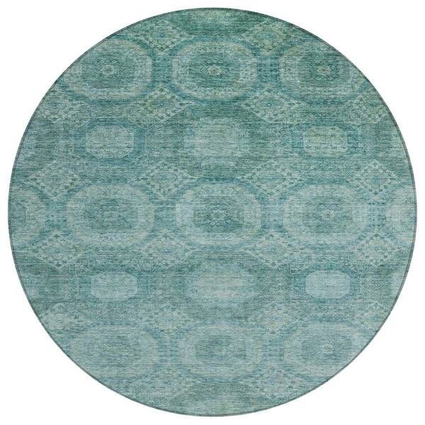 Chantille Machine Washable Indoor/Outdoor Abstract ACN1925 Teal 8 ft. x 8 ft. Round Rug