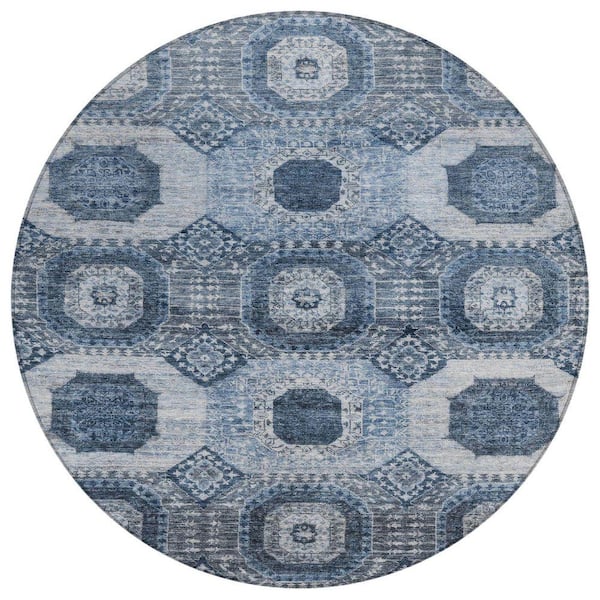 Chantille Machine Washable Indoor/Outdoor Abstract ACN1926 Blue 8 ft. x 8 ft. Round Rug