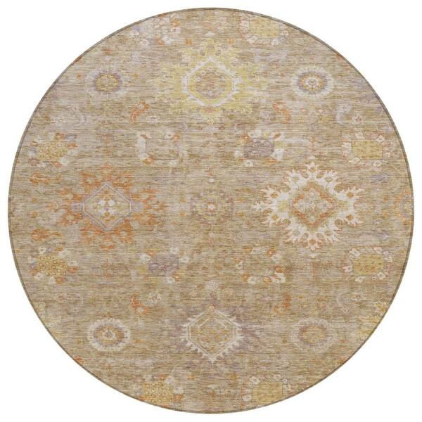 Chantille Machine Washable Indoor/Outdoor Abstract ACN1927 Beige 8 ft. x 8 ft. Round Rug