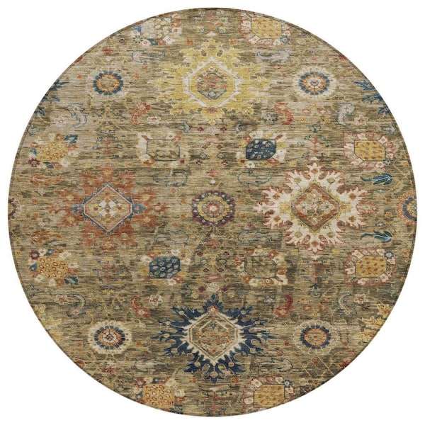 Chantille Machine Washable Indoor/Outdoor Abstract ACN1927 Brown 8 ft. x 8 ft. Round Rug