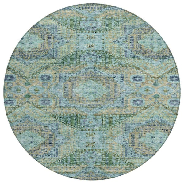 Chantille Machine Washable Indoor/Outdoor Abstract ACN1929 Green 8 ft. x 8 ft. Round Rug