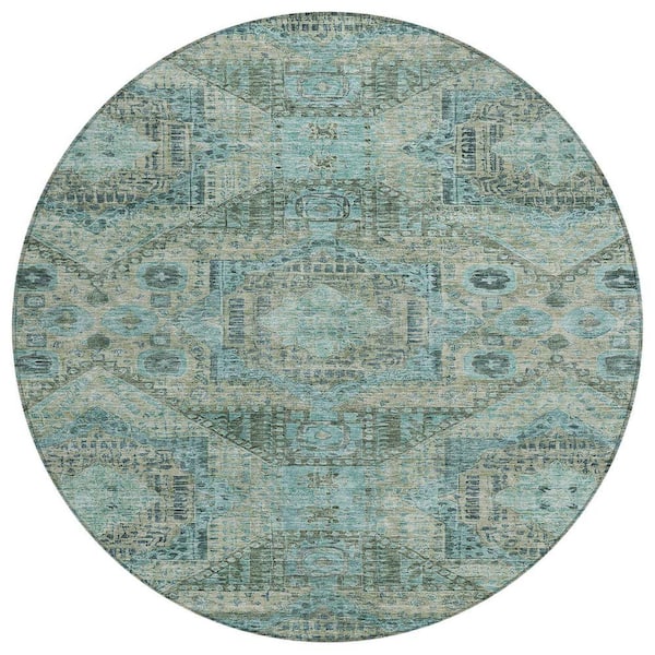 Chantille Machine Washable Indoor/Outdoor Abstract ACN1929 Sage 8 ft. x 8 ft. Round Rug