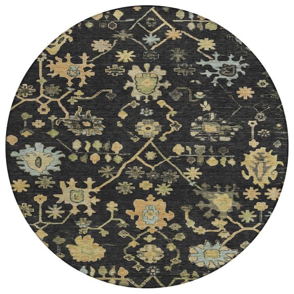 Chantille Machine Washable Indoor/Outdoor Abstract ACN1930 Black 8 ft. x 8 ft. Round Rug