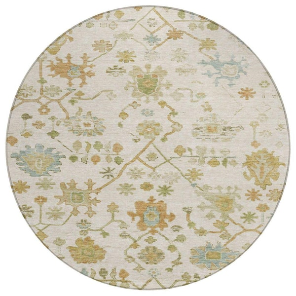 Chantille Machine Washable Indoor/Outdoor Abstract ACN1930 Ivory 8 ft. x 8 ft. Round Rug