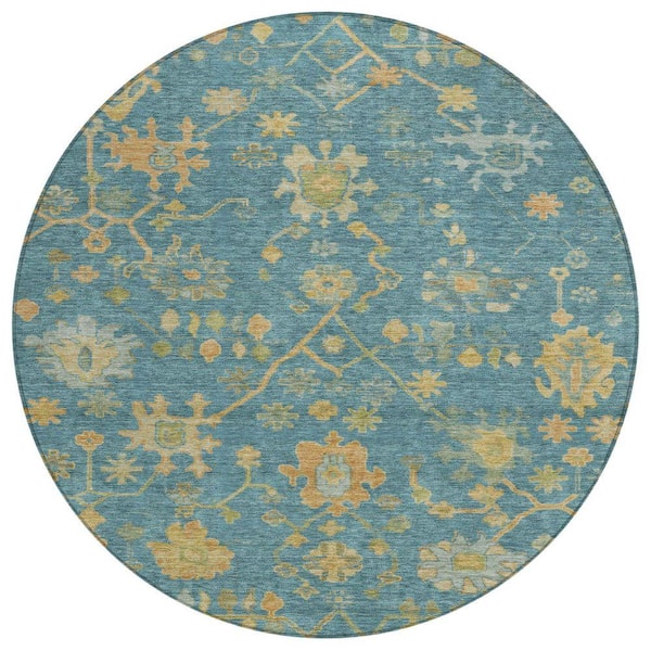 Chantille Machine Washable Indoor/Outdoor Abstract ACN1930 Teal 8 ft. x 8 ft. Round Rug