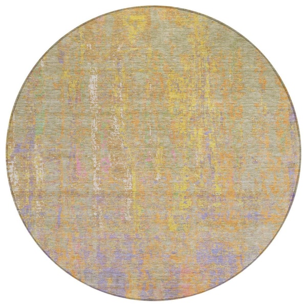Chantille Machine Washable Indoor/Outdoor Abstract ACN1931 Green 8 ft. x 8 ft. Round Rug