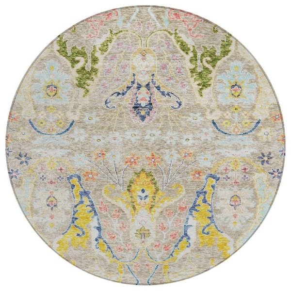 Chantille Machine Washable Indoor/Outdoor Abstract ACN1932 Beige 8 ft. x 8 ft. Round Rug
