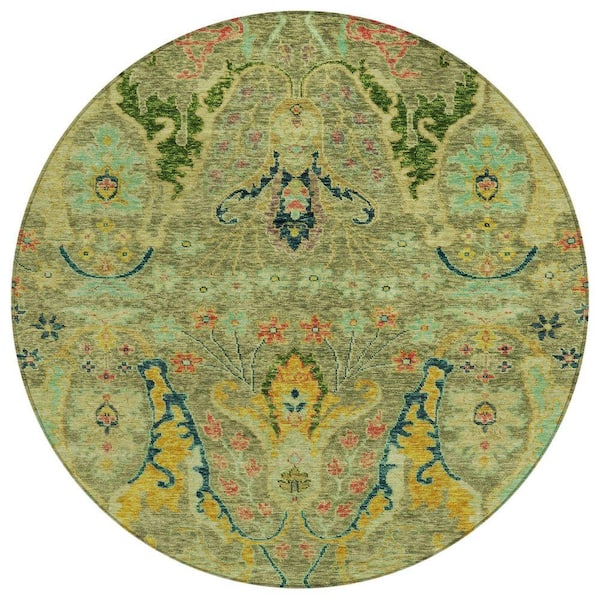 Chantille Machine Washable Indoor/Outdoor Abstract ACN1932 Green 8 ft. x 8 ft. Round Rug