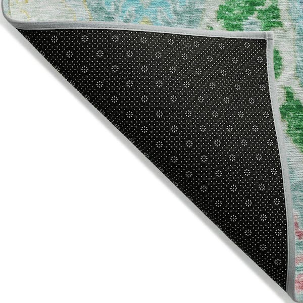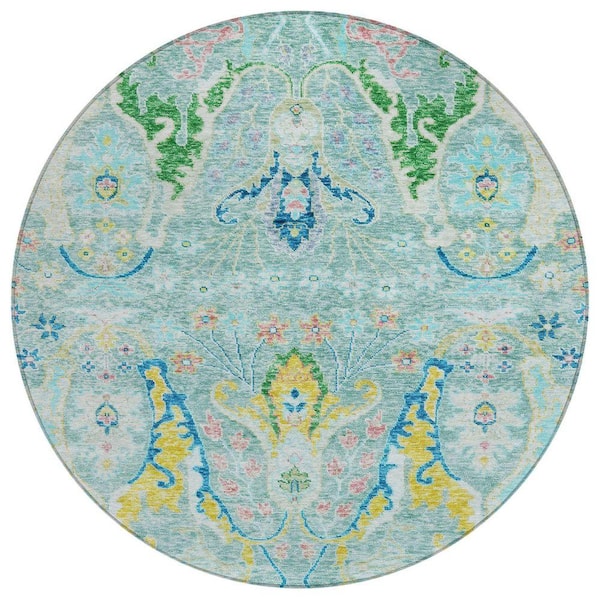 Chantille Machine Washable Indoor/Outdoor Abstract ACN1932 Teal 8 ft. x 8 ft. Round Rug