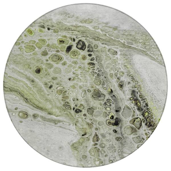 Chantille Machine Washable Indoor/Outdoor Abstract ACN1934 Aloe 8 ft. x 8 ft. Round Rug