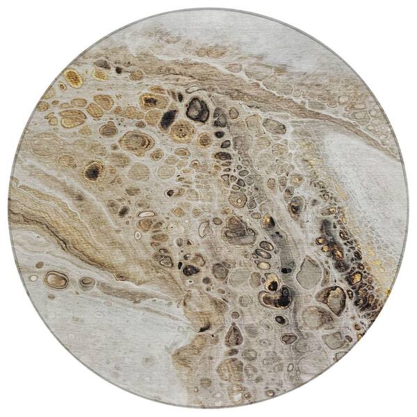 Chantille Machine Washable Indoor/Outdoor Abstract ACN1934 Beige 8 ft. x 8 ft. Round Rug