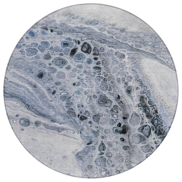 Chantille Machine Washable Indoor/Outdoor Abstract ACN1934 Blue 8 ft. x 8 ft. Round Rug