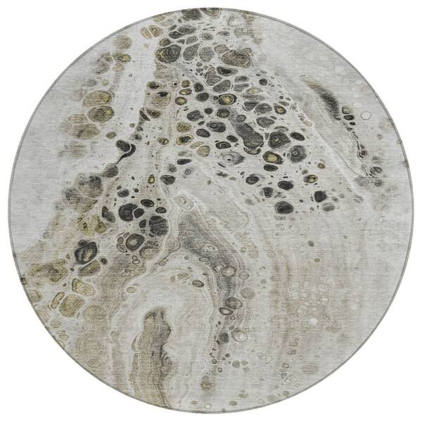 Chantille Machine Washable Indoor/Outdoor Abstract ACN1935 Taupe 8 ft. x 8 ft. Round Rug