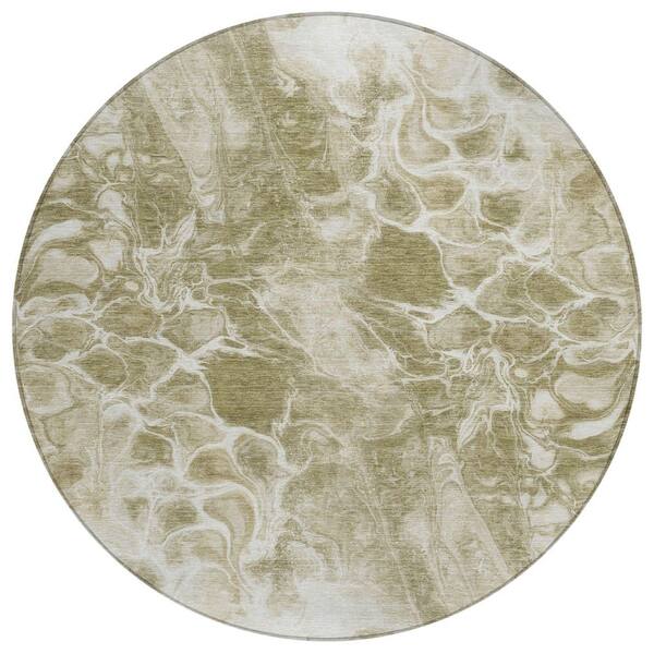 Chantille Machine Washable Indoor/Outdoor Abstract ACN1936 Khaki 8 ft. x 8 ft. Round Rug