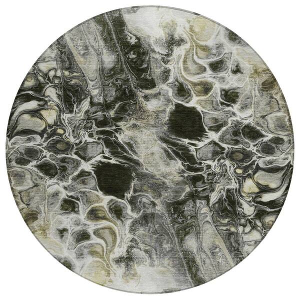 Chantille Machine Washable Indoor/Outdoor Abstract ACN1936 Pewter 8 ft. x 8 ft. Round Rug
