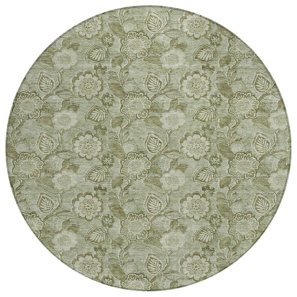 Chantille Machine Washable Indoor/Outdoor Abstract ACN1939 Aloe 8 ft. x 8 ft. Round Rug