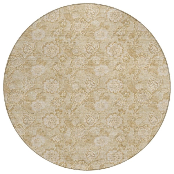 Chantille Machine Washable Indoor/Outdoor Abstract ACN1939 Beige 8 ft. x 8 ft. Round Rug