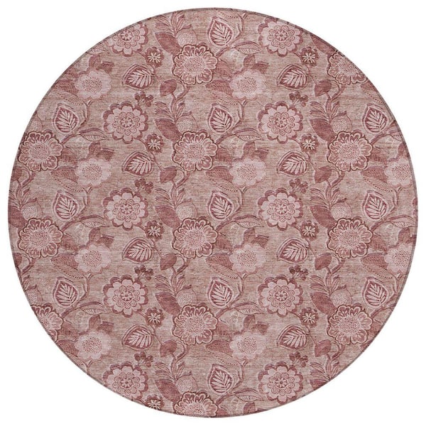 Chantille Machine Washable Indoor/Outdoor Abstract ACN1939 Blush 8 ft. x 8 ft. Round Rug