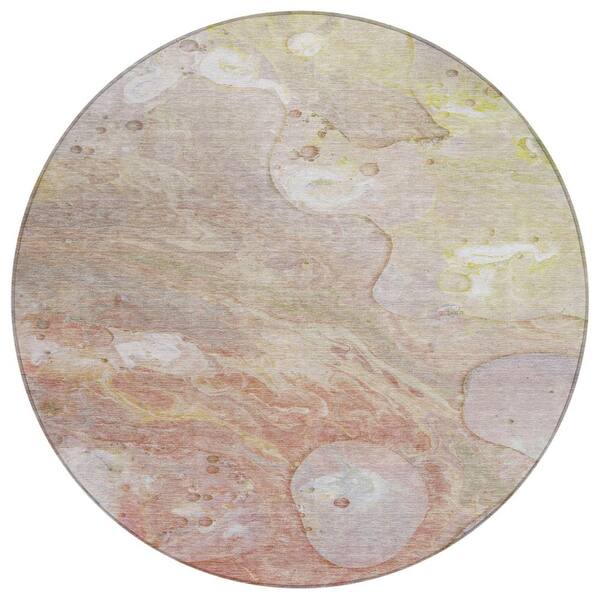 Chantille Machine Washable Indoor/Outdoor Abstract ACN1941 Salmon 8 ft. x 8 ft. Round Rug