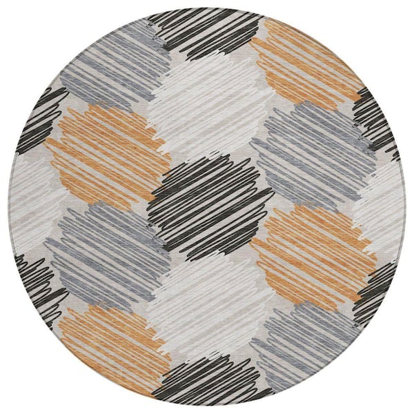 Chantille Machine Washable Indoor/Outdoor Abstract ACN1942 Copper 8 ft. x 8 ft. Round Rug
