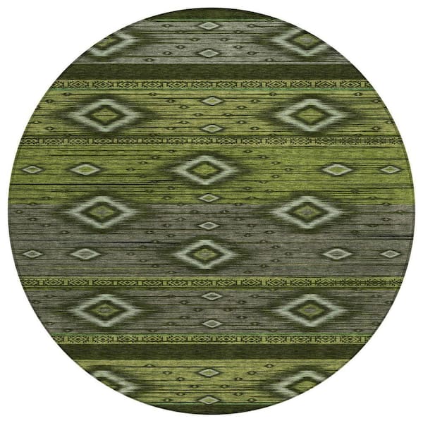Chantille Machine Washable Indoor/Outdoor Abstract ACN1943 Aloe 8 ft. x 8 ft. Round Rug