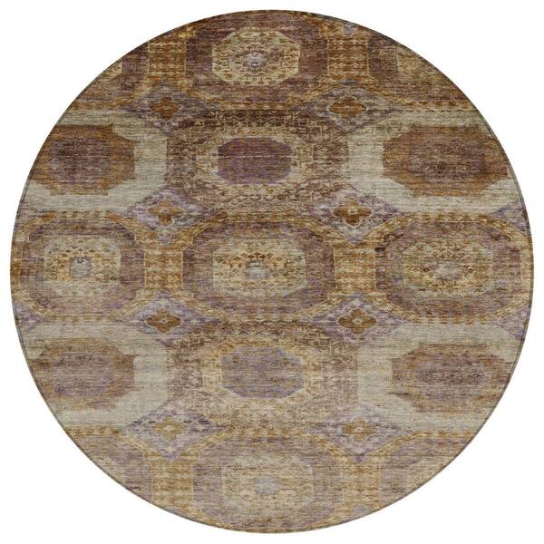 Chantille Machine Washable Indoor/Outdoor Abstract ACN1944 Rust 8 ft. x 8 ft. Round Rug