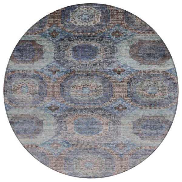 Chantille Machine Washable Indoor/Outdoor Abstract ACN1944 Teal 8 ft. x 8 ft. Round Rug