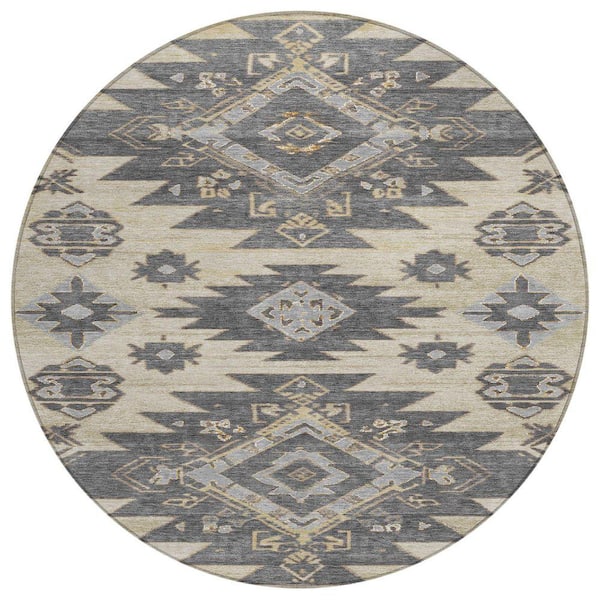 Chantille Machine Washable Indoor/Outdoor Abstract ACN1945 Beige 8 ft. x 8 ft. Round Rug